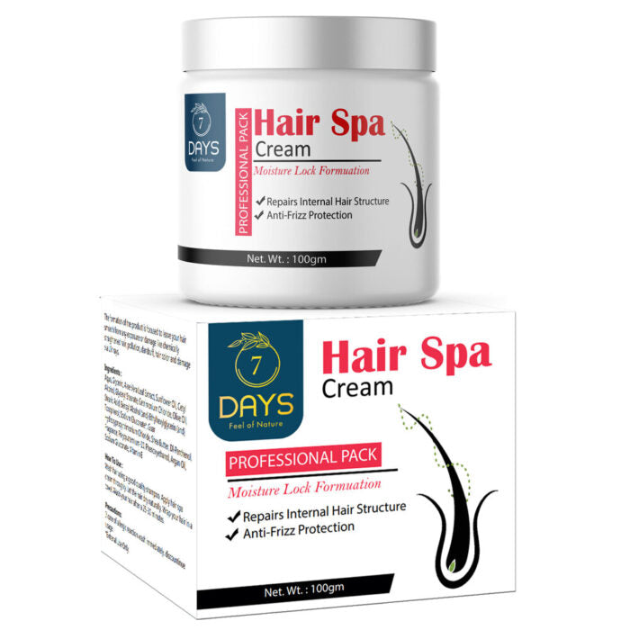 Introducing 7 Days “Hair Spa Cream“- Your Ultimate Solution for Luxuriously Gorgeous Hair! Experience a transformation like never before with our revolutionary Hair Spa Cream. Say goodbye to dry, damaged hair and hello to instant radiance and silkiness. Infused with a powerful blend of nature’s finest ingredients, this cream is your ticket to hair rejuvenation and renewal. Indulge your hair in the richness of Vitamin E, Sunflower, Argan Oil, Shea Butter, and more. Our unique formula works wonders, offering instant repairs to dry and damaged strands. Witness your hair transform into a mesmerizing cascade of shine, smoothness, and silkiness within minutes. Not just a superficial fix, our cream deeply conditions and detangles each strand, leaving your hair irresistibly hydrated. Tired of battling frizz? Let our Hair Spa Cream come to your rescue. It effortlessly tames frizziness, giving you hair that’s as sleek as it is stunning. Suitable for all hair types, our cream is a one-size-fits-all solution for anyone seeking lustrous locks. What sets us apart? We’re committed to your hair’s health. Our cream is free from parabens, mineral oil, phthalates, and other harmful chemicals. Crafted in a GMP-certified facility, using the choicest organic ingredients, it embodies quality you can trust. Our highly hydrating and quickly absorbing formula ensures you see results in an instant – no waiting around, just awe-inspiring hair. Unveil the secret to hair that’s more than just beautiful; it’s revitalized. With 7 Days Hair Spa Cream, each application is a step towards healthier, happier hair. Elevate your hair care routine, and let your hair be the envy of all. Embrace the confidence. Embrace the beauty of 7 Days Hair Spa Cream. Your hair deserves nothing less.