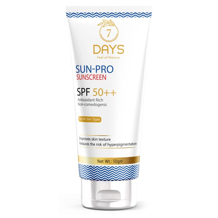 7 Days SunPro SPF 50+ Sunscreen is a powerhouse when it comes to protecting your skin. With its broad-spectrum formula, it provides comprehensive defense against both UVA and UVB rays. UVA rays penetrate deep into the skin, leading to long-term damage such as wrinkles and sunspots, while UVB rays primarily cause sunburn. By blocking these rays, SunPro SPF 50+ ensures that your skin is shielded from these harmful effects, minimising the risk of sun damage and premature ageing. One of the standout features of SunPro SPF 50+ is its high sun protection factor. With SPF 50+,